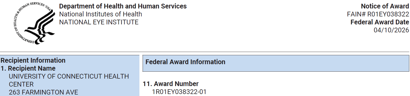 UConn Health press release on recent discoveries from our lab, New insights into how axons grow could lead to effective therapies for blindness, paralysis (by Kim Krieger, published in UConn Today), was covered in research news of the NIH National Eye Institute, which funded these studies, and in multiple news outlets:
